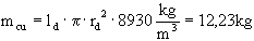 Eine Induktionsscheibe aus Bronze mit der Bezeichnung CuSn 6, Werkstoffnr. 2.1020 mit rCuSn=8,78·10-6 kg/mm² hat eine Masse von