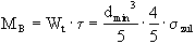 wobei Wt das Torsionswiderstandsmoment des zylindrischen Querschnitts ist.