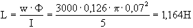 Über dieses Ergebnis läßt sich die Induktivität der Spule berechnen. Die Induktivität L ergibt sich als Quotient aus Spulenfluß w×F und Strom I, wobei die Stirnfläche des Eisenkerns als von der gesamten Durchflutung umfaßten Fläche angesehen wird.
