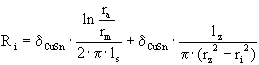 Das Moment Mi läßt sich auch über die Kraft F auf den Stromdurchflossenen Leiter im Magnetfeld B berechnen. Der Leiter hat die Länge l, die sich aus dem im Magnetfeld befindlichen Teilradius ra-ri ergibt (Abb.16).