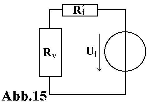 Alle Widerstände bis auf den Verbraucher werden zu einem Widerstand Ri´ zusammengefaßt und es ergibt sich ein einfaches Ersatzschaltbild (Abb.15).