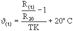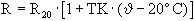 mit dem Widerstand bei 20°C R20 und Temperaturkoeffizienten von Kupfer TK=0,0039K-1.